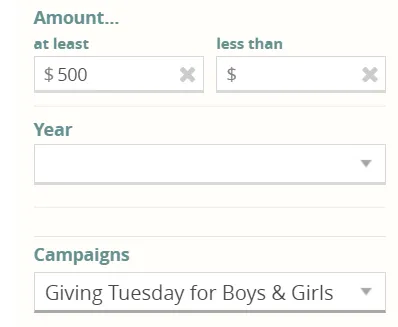 If you ran a Giving Tuesday campaign in past years, you can use that data to drive your campaign this year. In this case, your appeals will become more nuanced and may contain more personal messages, including phone calls. One strategy is to make lists of people who donated under a certain amount for your last campaign AND over a certain amount. This is simple within CommitChange; just filter your Payments dashboard by campaign and amount.