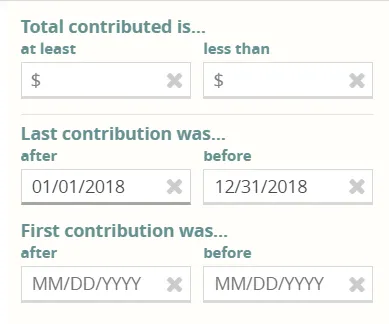 If you need to pull this information from CommitChange, just go to your Supporters dashboard and filter by the last donation before 12/31/2018 (or your own strategic date) then move the resulting list to your email client (by tagging and Mailchimp Sync or exporting). Remind those donors who have fallen away why their support is so important to you, especially during the giving season.